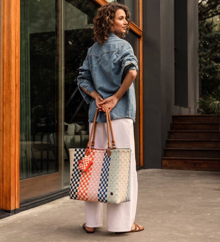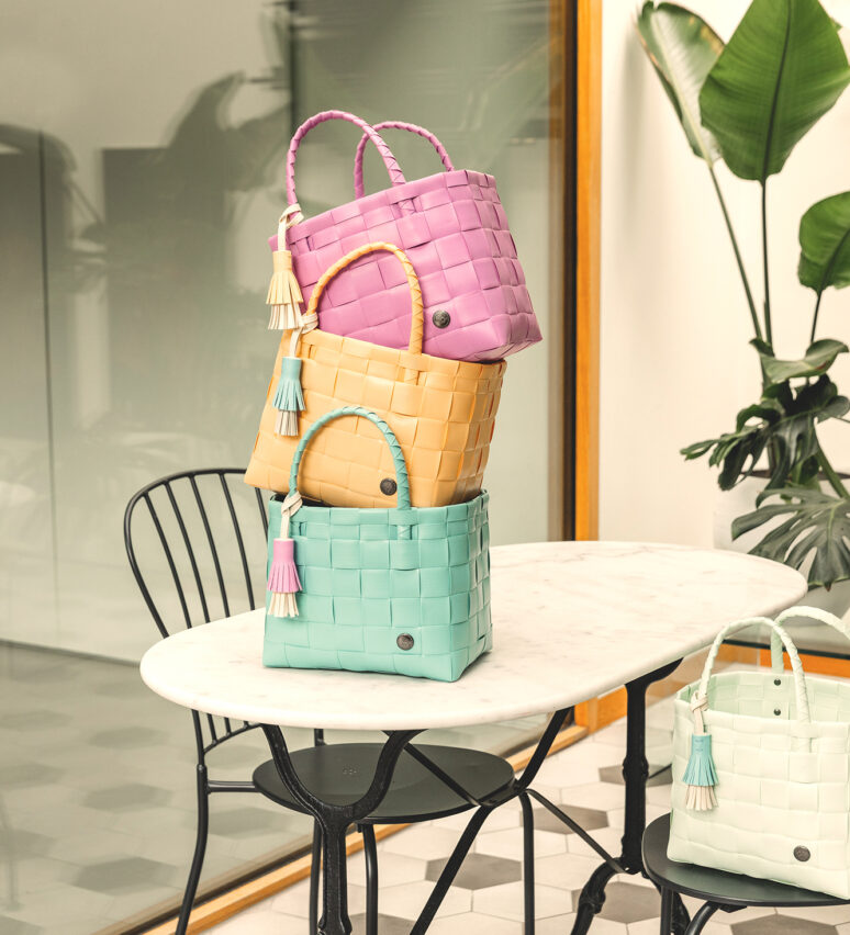Die Produkte von Handed By schenken gebrauchten Kunststoffen ein zweites Leben. Wir recyceln industriellen Kunststoffabfall zu Bandmaterial, um neue Kollektionen mit Handed-By-Taschen und Körben zu erstellen