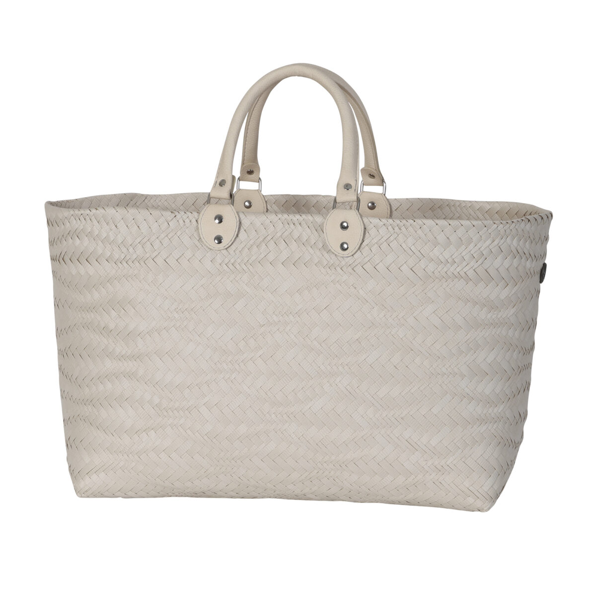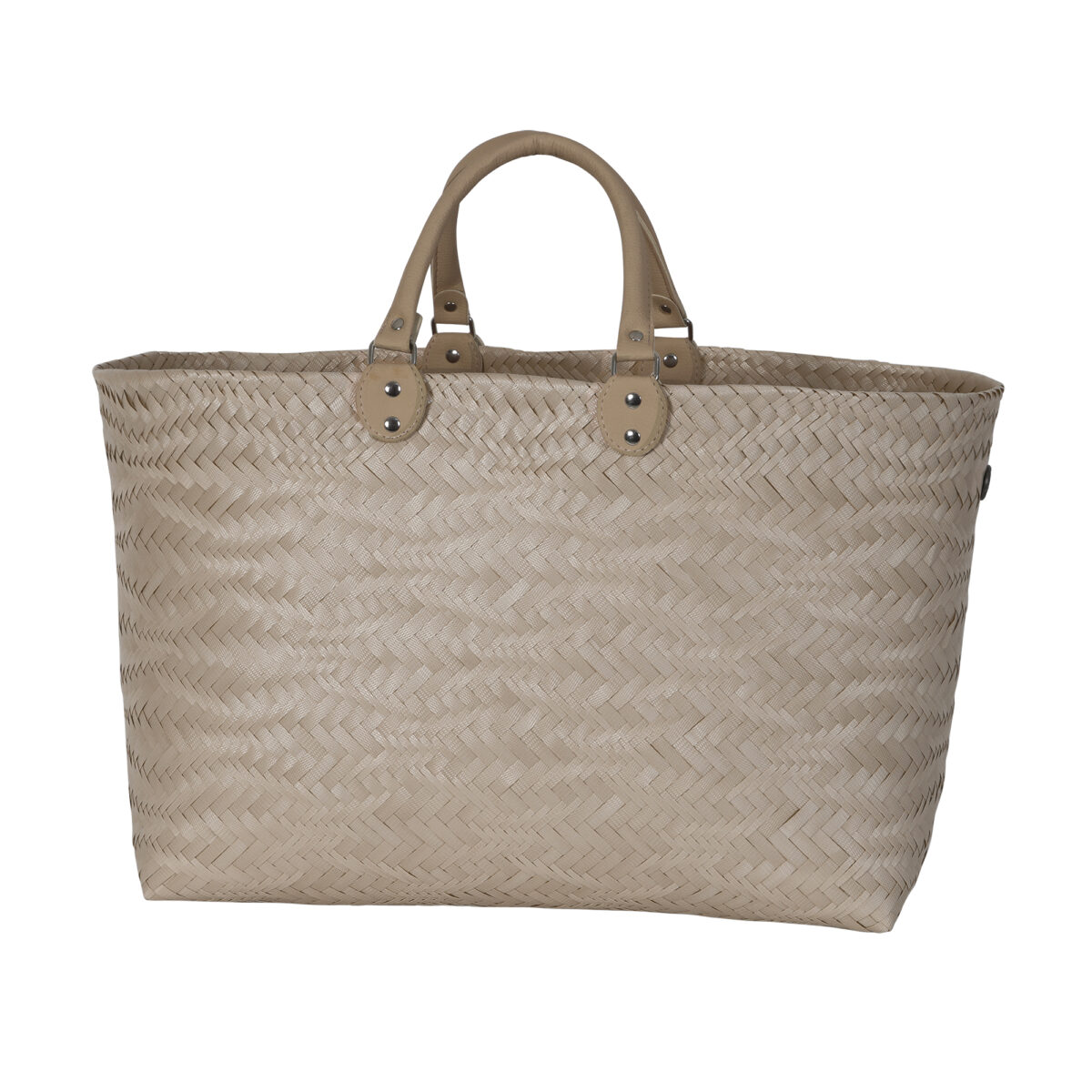 Die neue ‚PERCEY‘ Shopper-Tasche – eine geräumige, handgeflochtene Tasche mit funktionellem Design. Dank der doppelten Griffe bietet die ‚PERCEY‘ mehrere Tragemöglichkeiten: Mit den kurzen Griffen lässt sich die Tasche leicht in der Hand tragen, mit den langen Griffen kann sie bequem über die Schulter oder als Umhängetasche getragen werden. Ein zusätzliches Detail ist die Tasche an der Außenseite, die der Tasche ein einzigartiges Aussehen verleiht und praktisch für kleine Gegenstände ist, die man schnell zur Hand haben möchte. Die ‚PERCEY‘ wird in einer neutralen Grundfarbe geliefert, wobei Sie für die Griffe und die Außentasche eine kontrastierende Farbe wählen können. Perfekt für alle, die ein bisschen mehr Platz brauchen, sei es für die Arbeit, zum Einkaufen oder für einen Tagesausflug! Handgeflochten aus recyceltem Kunststoff.