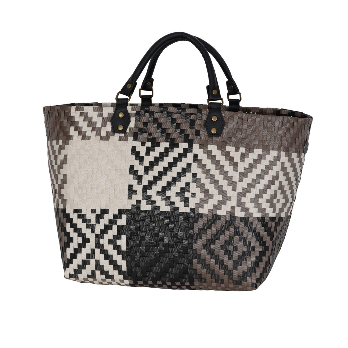 Die ‚QUINN‘ Shopper ist mit ihrem großzügigen Format und der stabilen Struktur der perfekte Tasche für jeden Tag. Ideal für die Arbeit, den Einkauf oder einen Tagesausflug. Das grafische Flechtmuster ist inspiriert von dem verspielten Charakter eines Patchworks oder Quilts. Die kurzen Henkel aus PU-Leder verleihen der Tasche einen coolen Touch und sorgen für angenehmen Tragekomfort. Leicht im Gewicht, handgefertigt aus recyceltem Plastik und überraschend geräumig, die QUINN Shopper ist eine zuverlässige Tasche, auf die du zählen kannst!